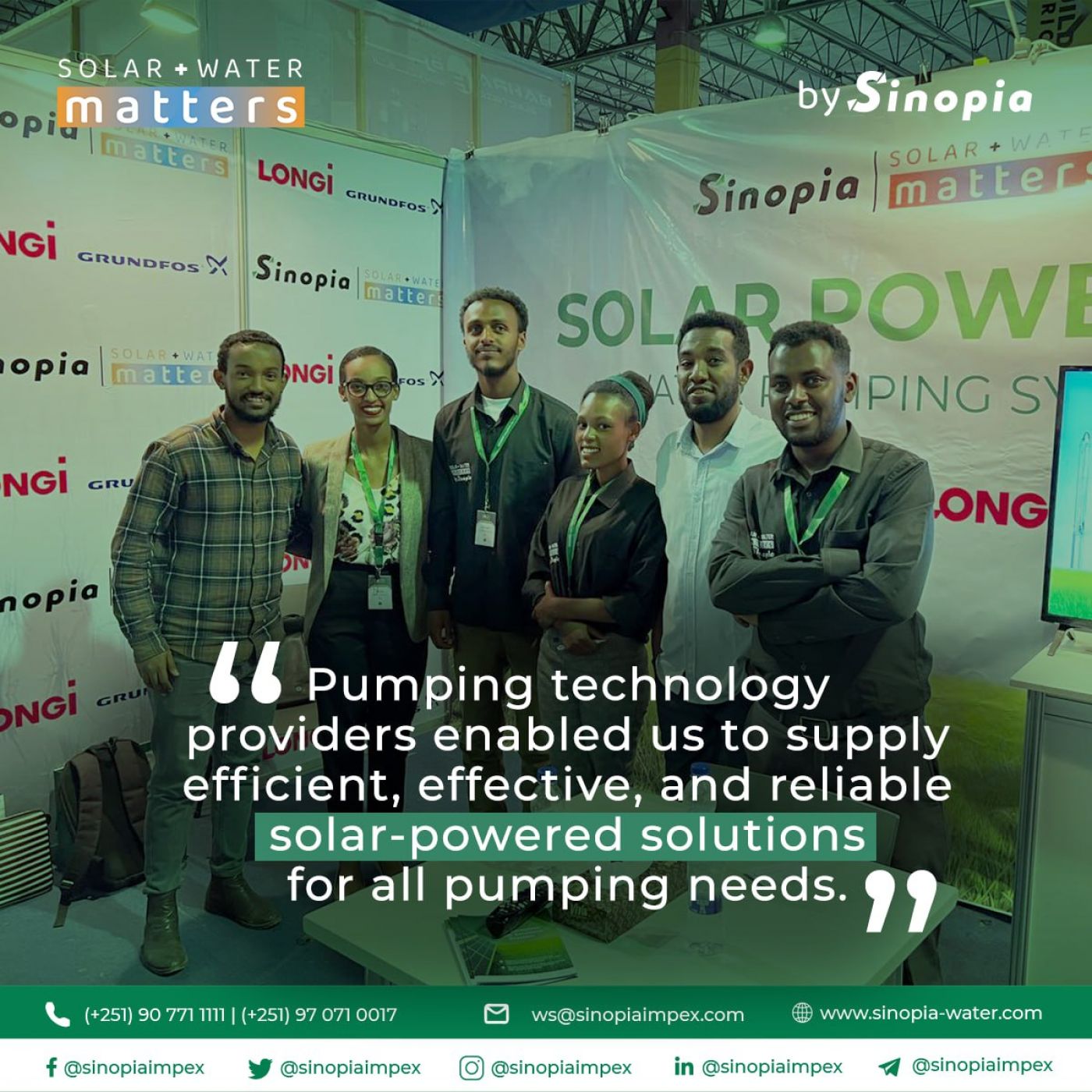 Abenezer: We primarily featured three of the many solutions we provide at the expo: the SP Solar Pump, the Longi solar panels, and the Grundfos SP solar system. Our solid partnership with the world's leading solar and pumping technology providers enabled us to supply efficient, effective, and reliable solar-powered solutions for all pumping needs.