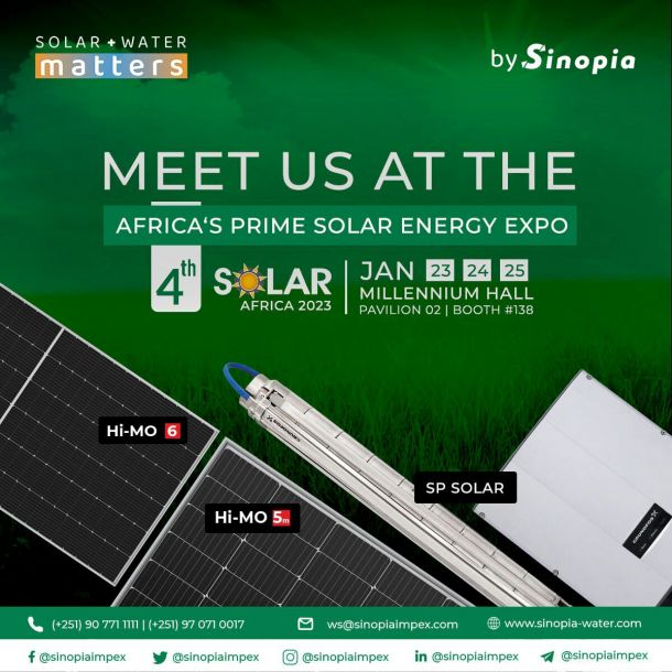It’s well-remembered that Sinopia participated as an exhibitor at the 4th Solar Africa Expo, Africa’s prime solar energy expo, from January 23 to 25, 2023, at Millennium Hall, Addis Ababa, Ethiopia. We have had a brief interview with Abenezer Negash, Division Head of Water and Power Solution (WPS), regarding Sinopia’s experience at the event.