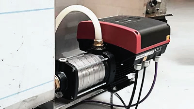Compact, reliable, horizontal, multistage, end-suction centrifugal pump with axial suction port and radial discharge port. The shaft, impellers and chambers are made of stainless steel. The inlet and discharge parts are made of cast iron. The me